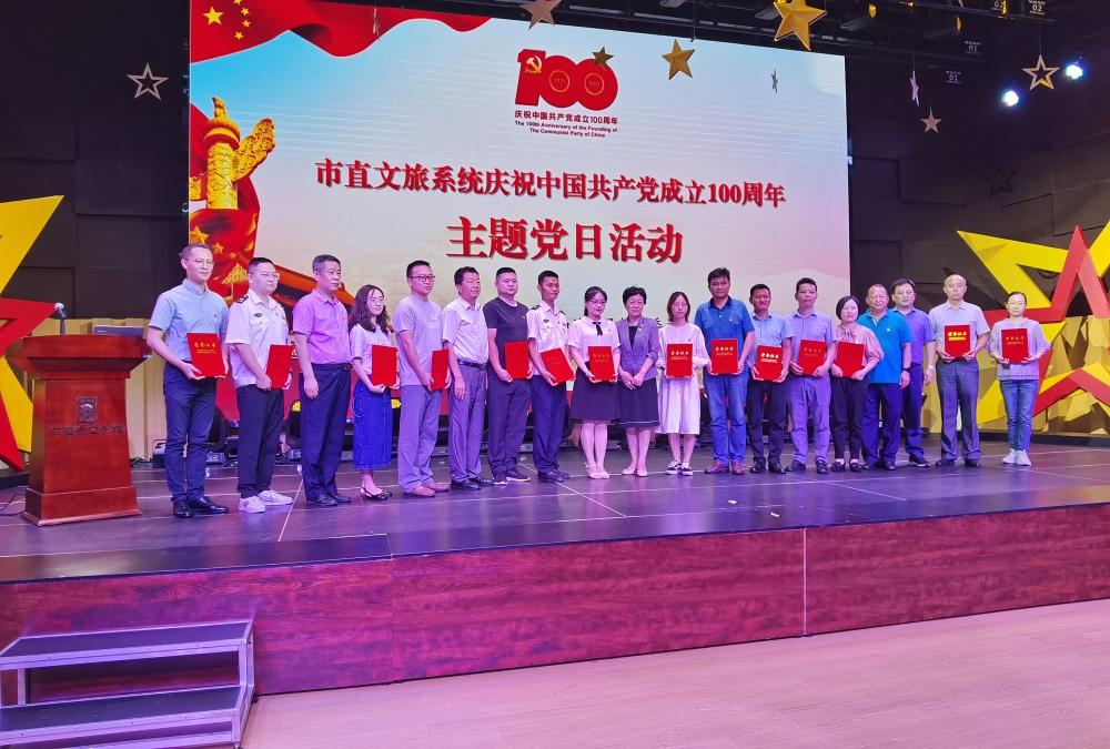一、支队党支部参加市文旅局组织开展的庆祝中国共产党成立100周年主题党日活动,市直文旅系统党龄满50周年的党员代表和全体在职党员参加。我支队获得先进基层党组织,陈从文、张昊两名同志获得优秀共产党员称号。支队全体党员聆听了市文旅局党组书记、局长魏武作重要讲话,观看了市直文旅系统“重温入党誓词,向党表决心”的短视颁,讲述六安红色故事——“一封家书”,观看纪录片《抗美援朝中的六安人》,让党员干部接受一场红色精神洗礼。