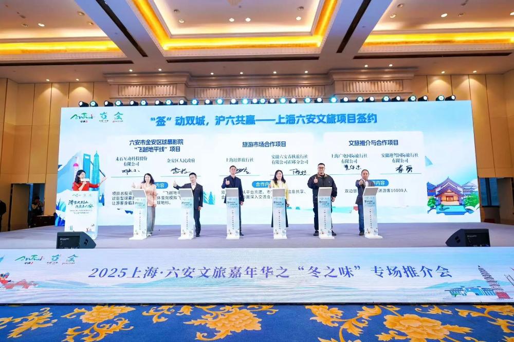 推介会最后,五位上海市民与旅行商代表共同启动2025上海・六安文旅嘉年华之“冬之味”体验季,开启“冬养大别山,首选去六安”的暖冬之约,向广大上海市民发出亲临六安、畅享“滑雪泡泉”的盛情邀请。
