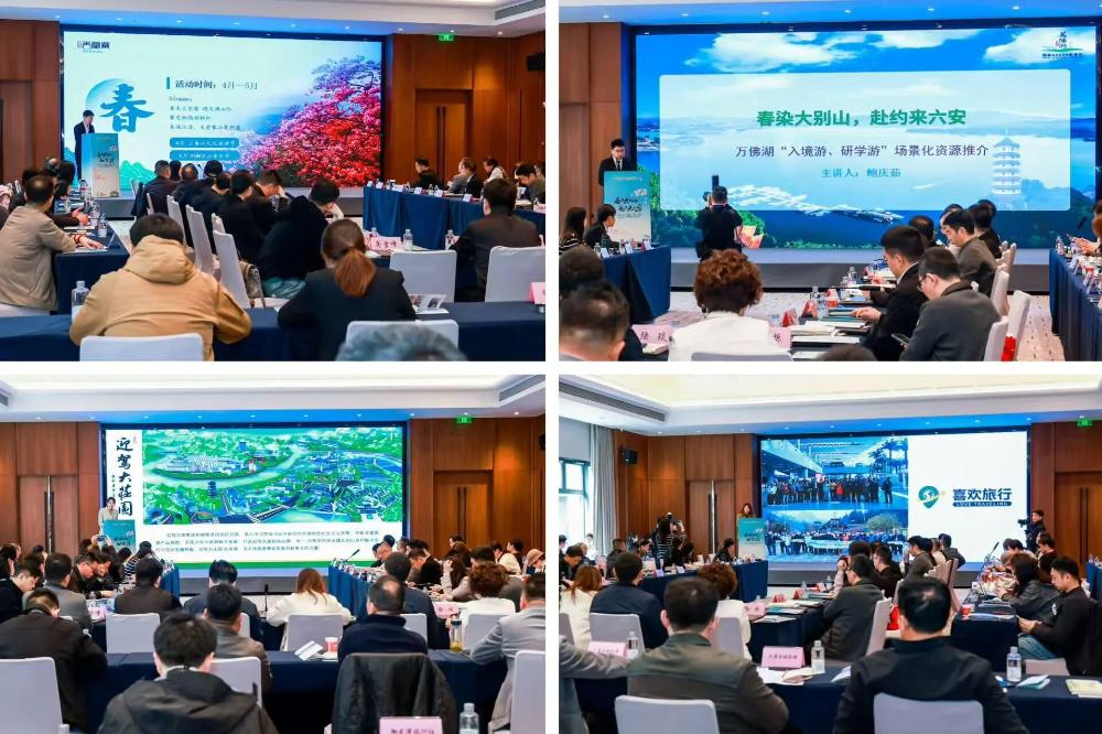 随后的“春染大别山,赴约来六安”入境游、研学游场景化推介环节别开生面。天堂寨景区、万佛湖景区、迎驾文旅集团、安徽喜欢旅行社四家文旅企业负责人进行了“场景化推介”。