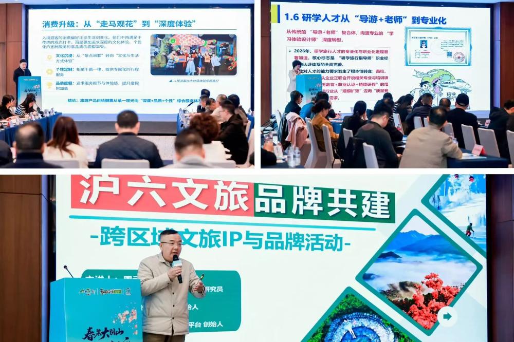 在“沪六联动,数智兴旅”主旨演讲环节,携程集团、上海汇播文化传播公司、上海品牌研究所三位行业专家从“入境游新趋势与消费升级下,六安文旅的全球适配路径”“2026研学游行业趋势解析与沪六研学资源互补发展策略”“2026年度沪六文旅品牌共建:跨区域文旅IP与品牌活动”等不同维度为六安文旅把脉定向。