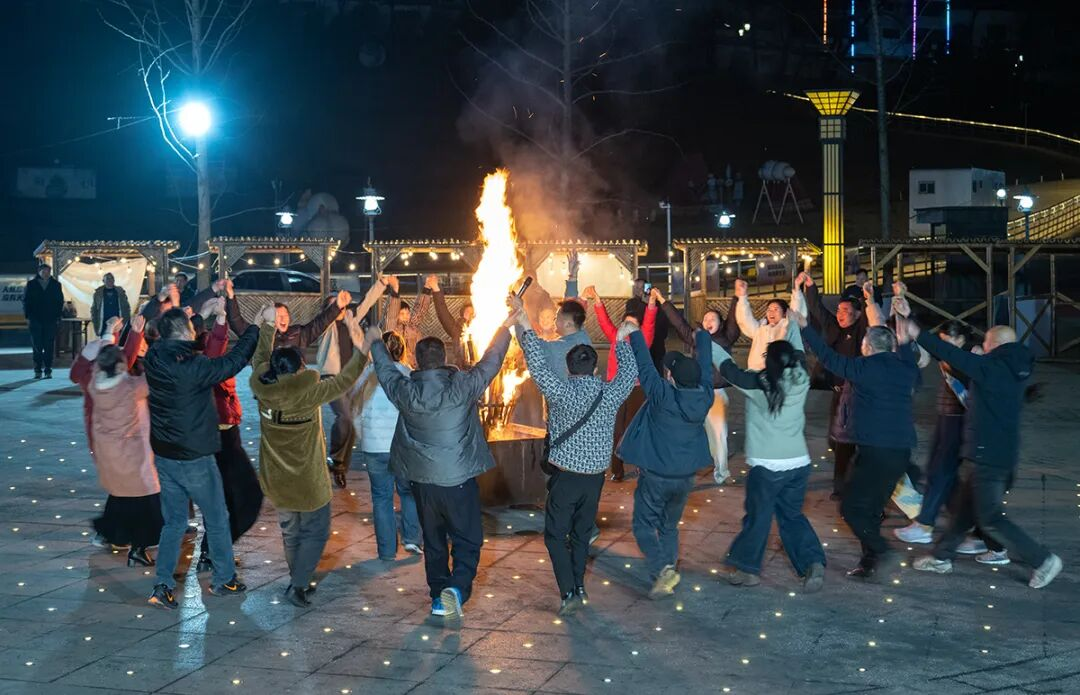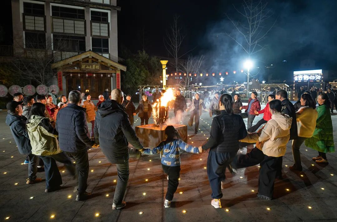 在陡沙河温泉小镇的星空下,熊熊篝火点燃了冬夜的温暖。音乐会形式新颖,氛围热烈,吸引了众多当地居民、游客及文旅工作者参与。这场别开生面的篝火晚会,不仅是一场视听盛宴,更是一个双向交流的窗口。在展现青浦城市魅力的同时,也让人深切感受到霍山独特的红色历史、自然资源与温泉康养文化。两地文化在歌声与火光中交织互动,进一步增进了相互了解,为后续文旅资源共享、市场互联互通奠定了人文基础。