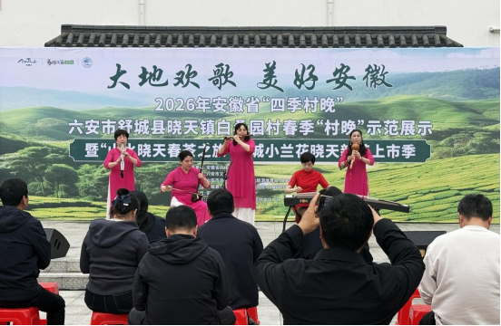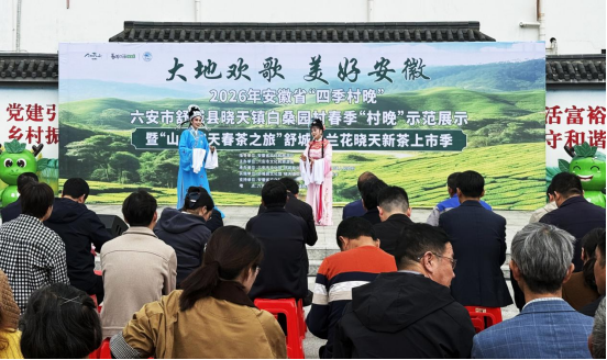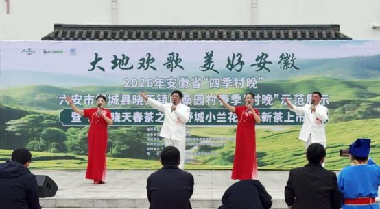 4月15日,“大地欢歌 美好安徽”2026年安徽省“四季村晚”六安市舒城县晓天镇白桑园村春季“村晚”示范展示暨“山水晓天 春茶之旅”舒城小兰花晓天新茶上市季活动,在晓天镇白桑园村文化广场精彩上演。
