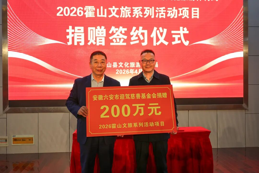 4月21日,“善行山水 文旅生花”迎驾慈善基金会捐赠暨2026霍山重点文旅体活动发布仪式成功举办。活动现场举行慈善捐赠签约,发布年度文旅体活动,启动“百名文旅推荐官”招募,同步推介霍山地道美食与“霍山有礼”伴手礼,以爱心赋能文旅,以活力点亮霍山。